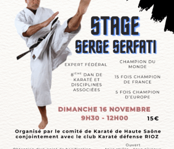 C’est conjointement avec le Comité départemental de Karaté de Haute-Saône que nous organisons un stage fédéral avec Serge Serfati.